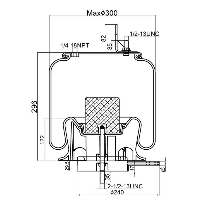 Outer Diameter: 254mm (non-standard, see base diagram for additional measurements)