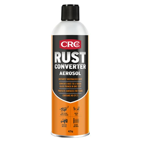CRC Rust Converter is a unique fast drying coating formulated for treatment of lightly rusted or correctly prepared metal surfaces. CRC Rust Converter neutralises rust and converts it to a tough black primer in one easy step. It binds to the surface and provides a waterproof barrier by sealing out moisture and other outside elements for effective long-lasting rust protection. No more sandblasting, heavy scraping, or grinding.