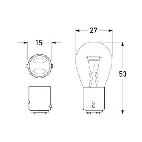 Bayonet stop & tail lamp bulbs. Double contact, double filament, offset pins.
