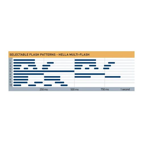 Multivolt warning lamp for emergency vehicles. The HELLA multi-flash range of warning lamps have 10 programmable flash modes and can be synchronised to flash alternately or in unison.