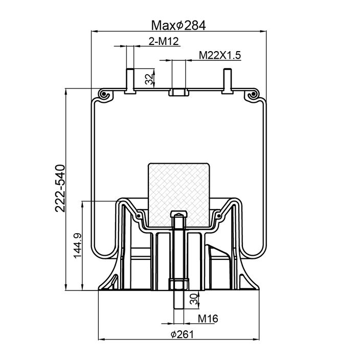 Height: 222 - 540mm (excl. studs)