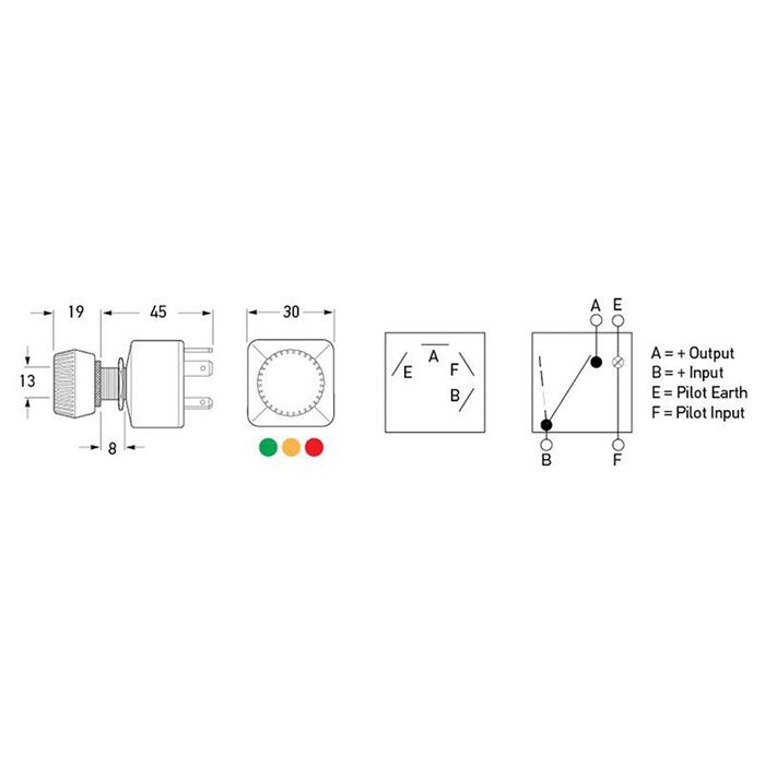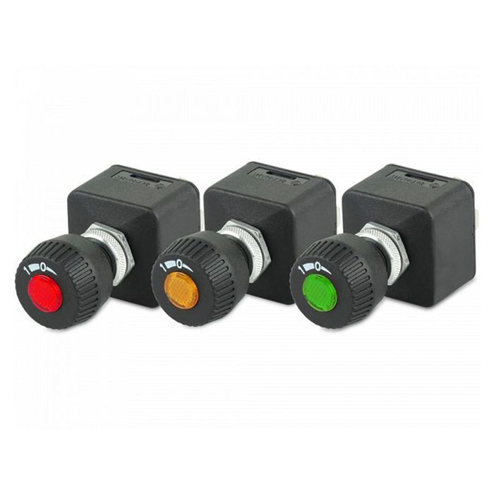 Illuminated by inbuilt 12V capillary bulb, complete with red, amber and green lenses.