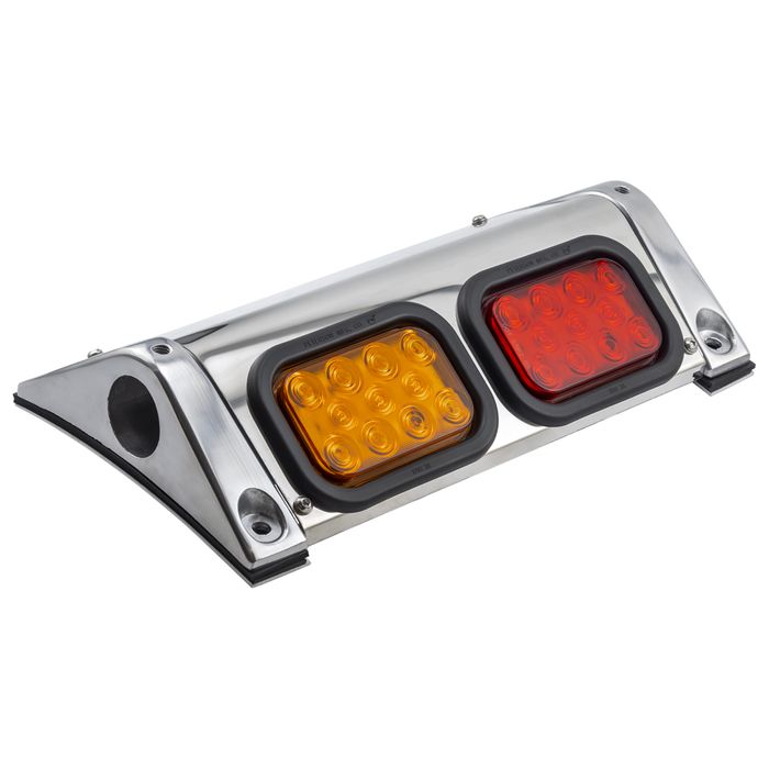 Features 2 polished cast aluminium mud guard saddles, stainless steel curved plate, Peterson LED lights and rubber grommets.
