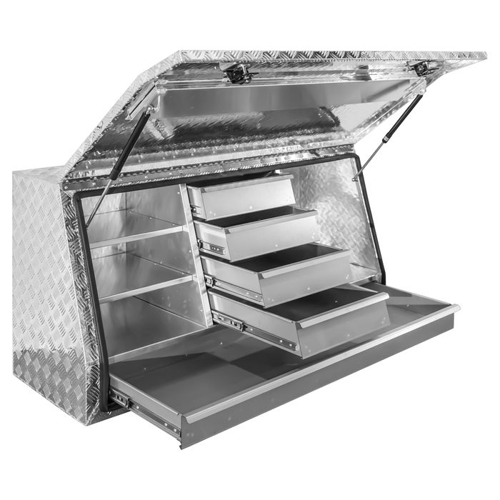 - MTW Aluminium Chequer Plate Ute Toolbox - 1400x500x700mm - 5 Drawer