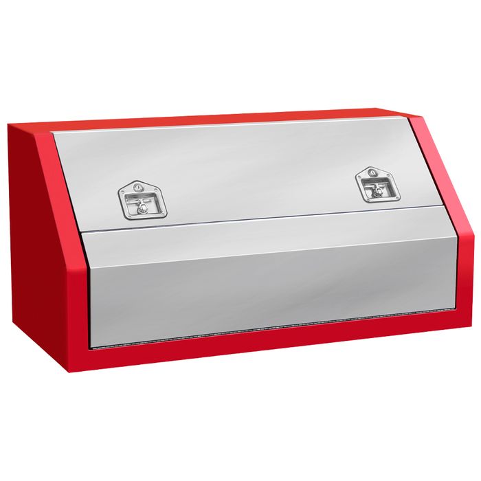 Made from durable powder coated steel plate this toolbox offers secure storage for your tools and other valuables.