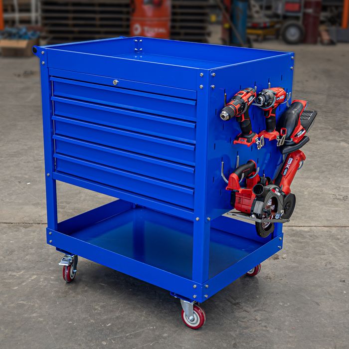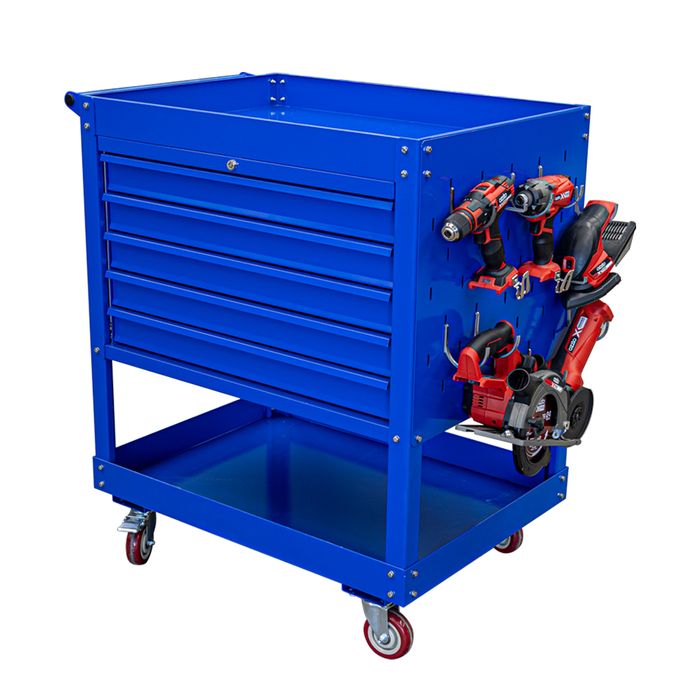 - MTW 5 Drawer Blue Tool Cart With Castors & Lock